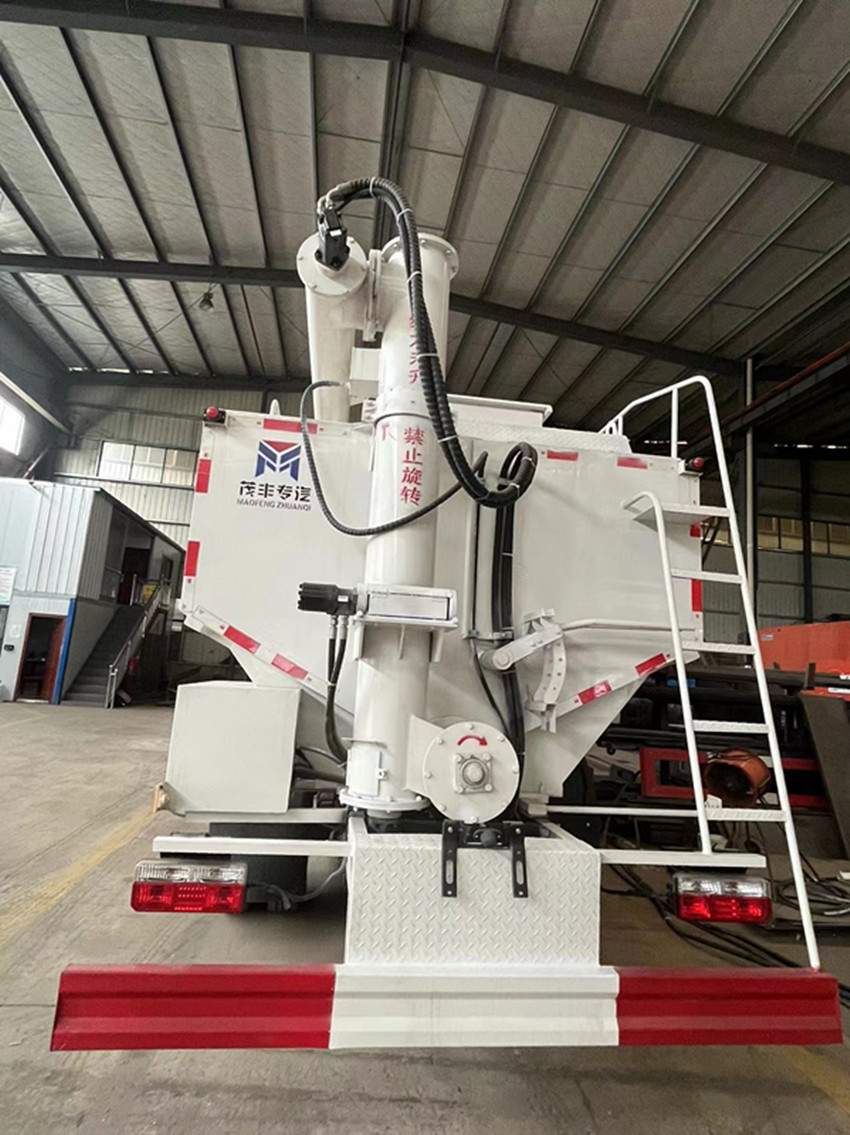 可獨(dú)立控制各分倉(cāng)卸料順序和速度,整車3條蛟龍(底部水平絞龍、尾部垂直絞龍、頂部卸料絞龍),由取力器經(jīng)車輛變速箱取力后,將動(dòng)力傳動(dòng)至高壓油泵以驅(qū)動(dòng)液壓系統(tǒng)帶動(dòng)各絞龍工作,或者由3個(gè)5.5kw 380v電機(jī)帶動(dòng)各絞龍工作,頂部絞龍液壓控制舉升,可左右旋轉(zhuǎn)180°此車公告+環(huán)保+燃油齊全,全國(guó)上戶無(wú)憂!